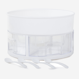 Cztery pojemne szufladki i obrotowa podstawa zapewniają szybki dostęp oraz porządek na blacie lub w szafce.