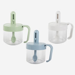 Zamykany pojemnik kuchenny z wysuwaną łyżeczką i uchem.